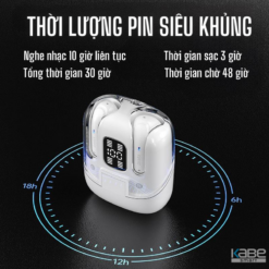 – Pin khủng 10 tiếng: Sản phẩm được trang bị pin dung lượng lớn, cho phép bạn sử dụng trong thời gian dài mà không cần lo lắng về việc sạc lại. Điều này đảm bảo rằng bạn có thể tận hưởng âm nhạc mà không bị gián đoạn.
