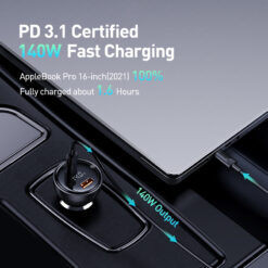 Sạc ô tô Baseus 140W PD3.1 Sạc nhanh QC3.0 Sạc nhanh cho Macbook Pro Laptop USB Type C Sạc điện thoại trên ô tô cho iPhone